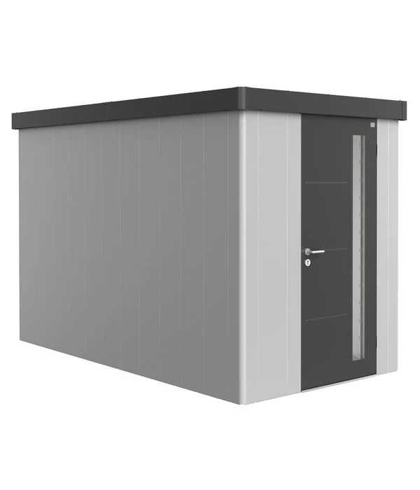 Wenn Sie sich für ein Gartengerätehaus entscheiden, dann muss es vor allem eines sein: ein absoluter Outdoor-Profi, der jeder Witterung trotzen kann und Ihren Gartengeräten vom Rasenmäher bis zum Spaten eine sichere Unterkunft bietet. Glückwunsch, da sind Sie beim Biohort Gerätehaus Neo 4A genau richtig. Denn es bietet Ihnen mit seiner Grundfläche von 6,26 m² viel Raum für Ihre neue Geräteordnung und schützt seinen Inhalt mit extrem stabilen Wänden und einem ebenso stabilen Dach. Denn Ihr neues Gartenbauwerk ist sturmsicher bis Windstärke 12 und kann Schneelasten bis 150 kg/m² tragen. Die Stahlblechwände wurden dafür in besonders hoher Materialstärke gefertigt und zusätzlich feuerverzinkt und polyamid-einbrennlackiert. Das Dach verfügt über ein Wasserableitsystem und im Lieferumfang sind auch bereits zwei Regenfallrohre enthalten. Die Tür ist gasdruckgefedert und kann dank Dreifachverriegelung sicher abgeschlossen werden. Dass von der Drückergarnitur bis zum Scharnier alle Kleinteile aus Edelstahl sind, ist hier schon fast selbstverständlich. Greifen Sie beim Biohort Gerätehaus Neo 4A also guten Gewissens zu!