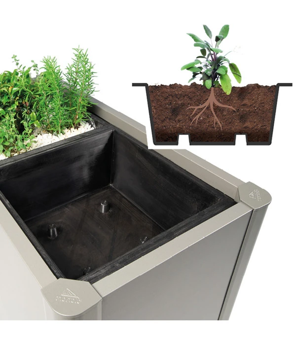 Der Biohort Pflanzeinsatz Belvedere ist ein Kunststoffeinsatz zur Platzierung auf dem Zwischenboden Ihres Biohort Hochbeets. Er kann ganz einfach mit Löchern versehen werden, sodass das Wasser problemlos ablaufen kann und Staunässe vermieden wird. Ein weiterer Vorteil ist, dass Sie sich deutlich Füllmaterial sparen, da Sie nicht das komplette Hochbeet mit beispielsweise Erde bestücken müssen. Am besten den Pflanzeinsatz gleich zu Ihrem Biohort Hochbeet Belvedere mitbestellen und ohne viel Aufwand mit dem Gärtnern loslegen.