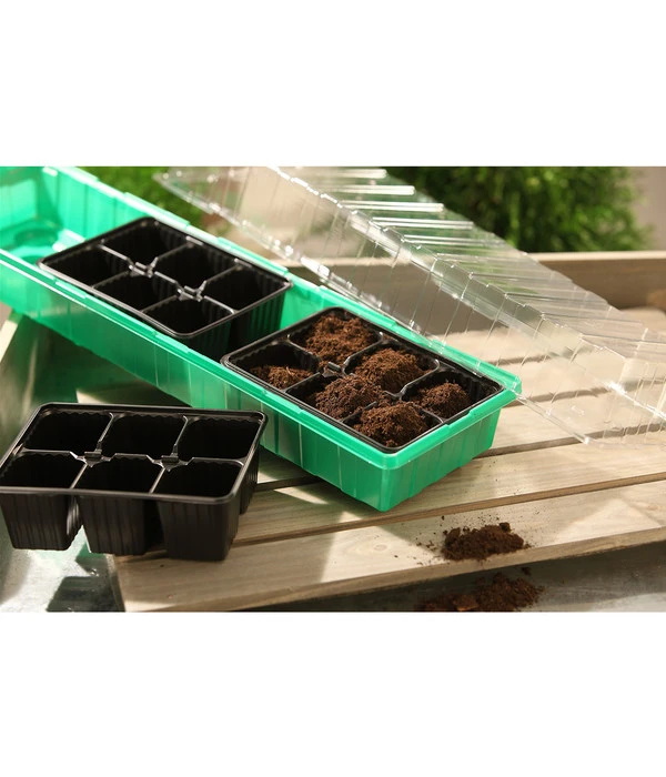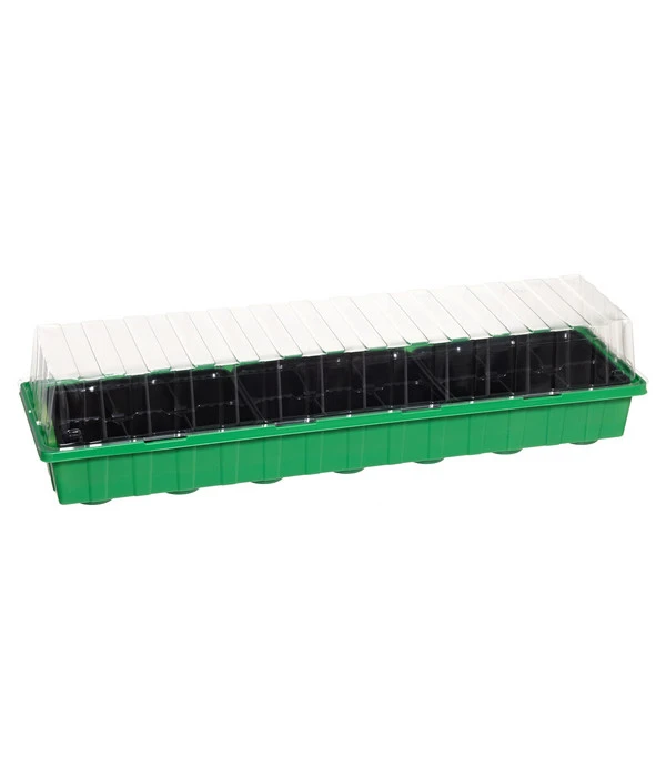 Die Aufzucht von Pflanzen ist nicht mehr nur den Profigärtnern vorbehalten. Mit kleinen Helfern und den richtigen Utensilien kann jeder Hobbygärtner tolle Ergebnisse mit der eigenen Aufzucht von Pflänzchen erzielen. Sie benötigen nicht einmal ein großes Treibhaus im Garten. Das Dehner Zimmergewächshaus Frans ist ideal zur unkomplizierten Aufzucht in der Wohnung oder im Haus. Gewächshäuser schaffen spezielle Bedingungen, die für eine Anzucht von Jungpflanzen wichtig sind. Das 54 x 15 x 12 cm große Gewächshaus aus Kunststoff bietet Platz für 18 Töpfchen und ist dank seiner kompakten Form ganz einfach auf der Fensterbank aufzustellen. Da Jungpflanzen viel Licht und Wärme benötigen, ist der Fenstersims der optimale Standort zur Anzucht. Die praktischen Kunststoffeinsätze sind mit dabei und eigenen sich zur Aussaat für Sämlinge sowie für Stecklinge. Egal ob für frische Kräuter oder Salat- und Gemüsepflanzen, das Dehner Zimmergewächshaus kann individuell und flexibel genutzt werden.