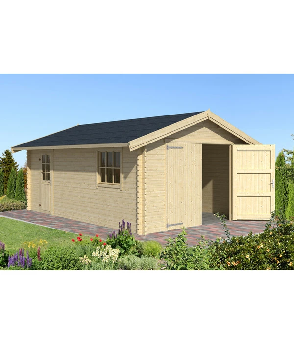 Die Lasita Maja Garage Yarik 540 wird aus 4-seitig gehobelten, 40 mm starken Wandbohlen mit Doppelnut und Feder errichtet, das Dach besteht aus 15 mm Profilschalung mit Nut und Feder. Türen und Fenster haben eine Echtverglasung, das Fenster wird mit einem Dreh-/Kipp-Beschlag geliefert. Und zu den Türen erhalten Sie eine Drückergarnitur mit Profilzylinderschloss.