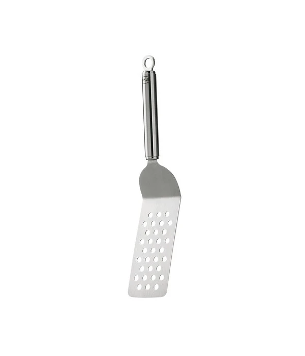 Zum leichten Wenden von z.B. Burgern. Durch die gekröpfte Form ideal zum Herausheben von Speisen aus der Grillpfanne oder von der Grillplatte Durch die Lochung können Fett und Flüssigkeiten abtropfen.