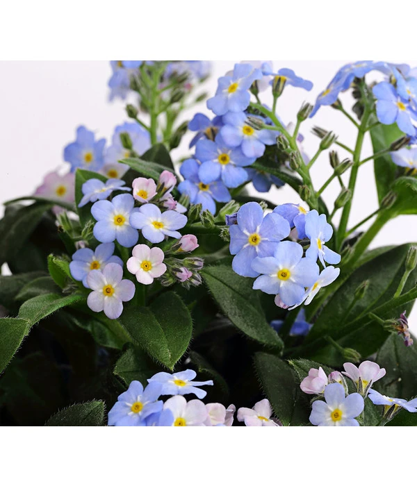 Einmal gesehen – und schon kann man nur noch an die großen, himmelblauen Blüten des Vergissmeinnichts denken, denn ‚Myomark‘ stellt alle bisher dagewesenen Myosotis-Sorten in den Schatten. Bereits im Februar darf man sich an den filigranen Blütenwolken erfreuen, die zunächst Zartrosa erscheinen und später in sanftem Blau bunte Frühlingsgefäße füllen. Ursprünglich ist das Vergissmeinnicht auch in Europa beheimatet und ist aufgrund der reichlichen und ausdauernden Blüte ein absoluter Frühlingsklassiker. Die kompakt wachsenden Gartenpflanzen erfreuen überdurchschnittlich lange mit einer wunderschönen Blüte, die einen herrlichen Kontrast zum dunkelgrünen Laub bildet.