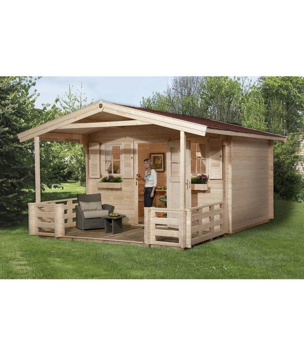 Gartenhaus in stabiler Blockbohlenbauweise, 45 mm Wandstärke,mit 19 mm Massivholzdach und Massivholzboden